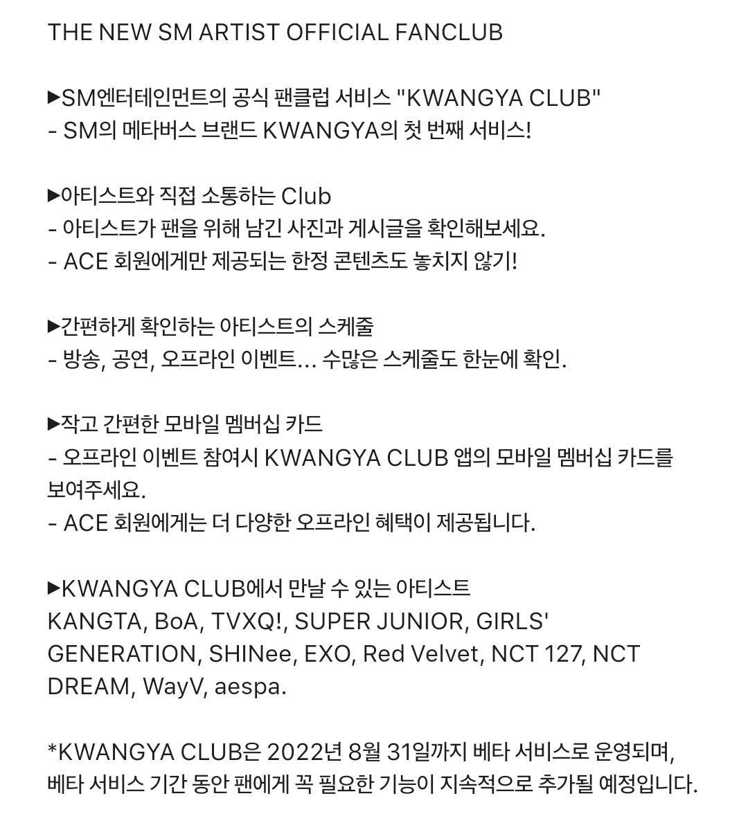- 활동 기간 : 구입한 ACE 멤버십 코드를 MUSIC NATION SMTOWN(MY PAGE) 에 등록한 날로부터 1년