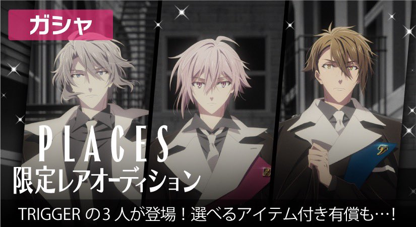 【ゲーム情報】11/7より、UR[PLACES]衣装のTRIGGERのメンバーが限定レアオーディションに登場しております!