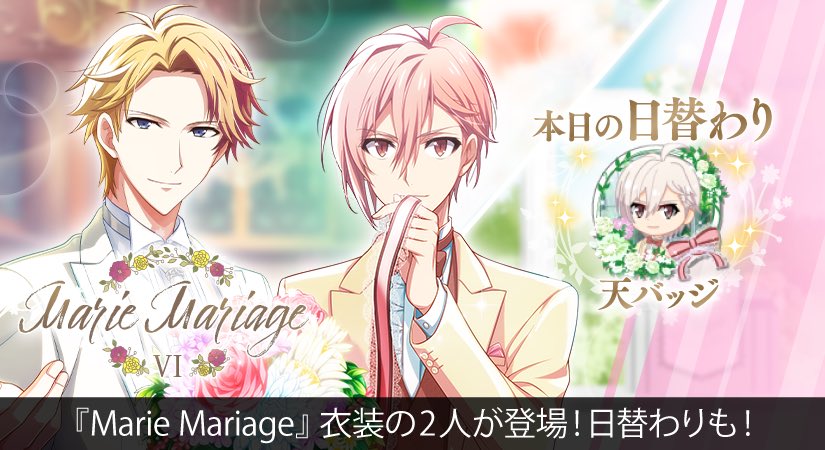 【ゲーム情報】1/31~2/8の期間限定で、限定レアオーディションに『Marie Mariage』衣装のナギくん、天くんが登場します!