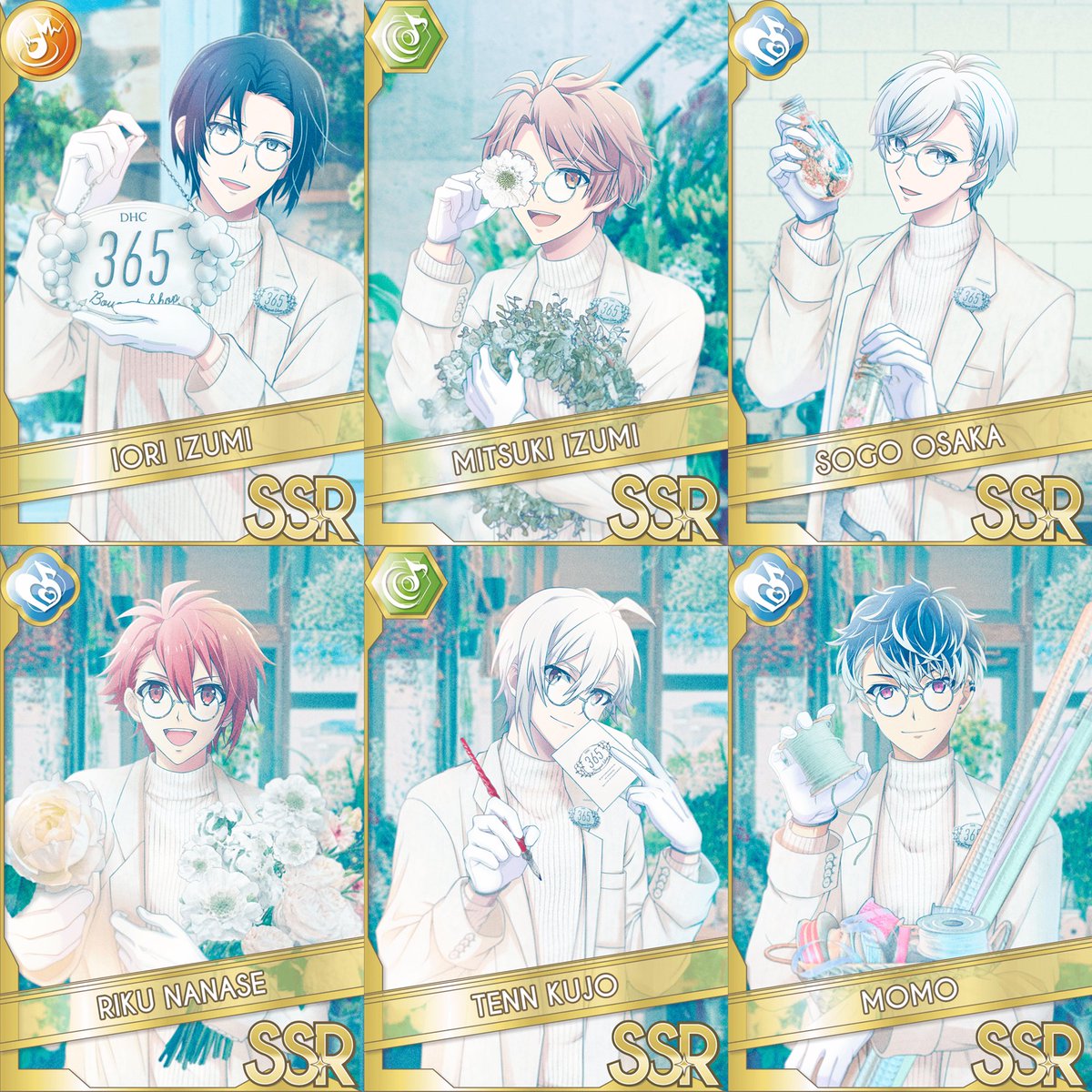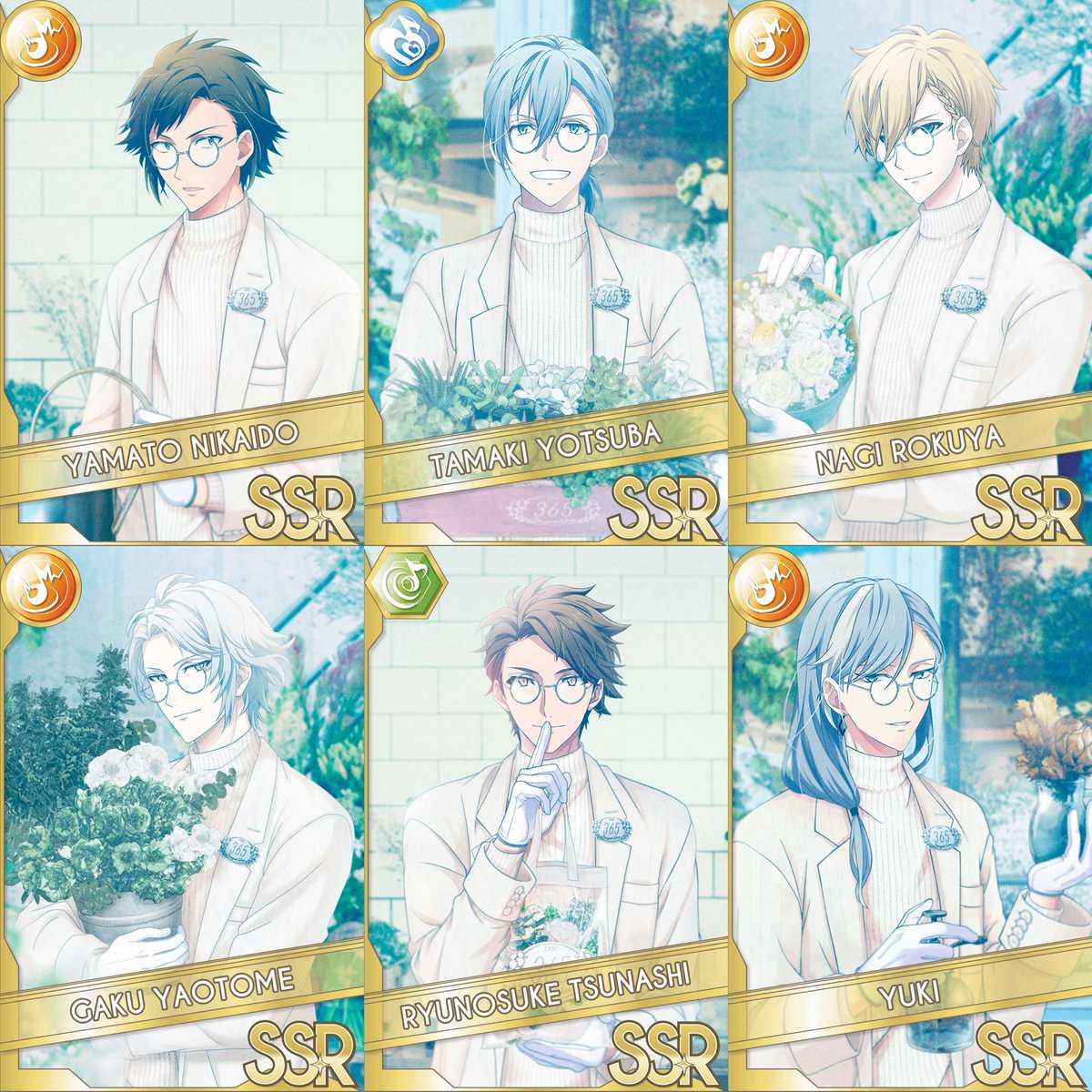 AグループではSSR[君の素顔に花束を]の一織くん、三月くん、壮五くん、陸くんが、天くん、百くんがオーディションに登場中です!