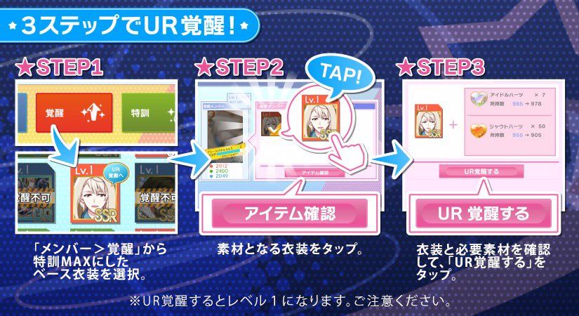 UR覚醒すると、アイドルの新しい姿が見れ、能力もアップ!