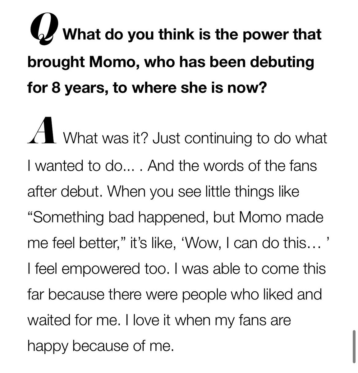 “I was able to come this far because there were people who liked and waited for me. I love it when my fans are happy because of me.”