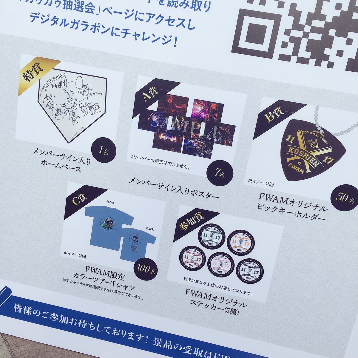 【甲子園】FWAMガゥガゥ抽選会はグッズ販売と同様に本日から大阪湊町リバープレイスにて展開中!参加すれば必ず限定ステッカーが貰えます!豪華景品も展示中なので是非ご参加ください!