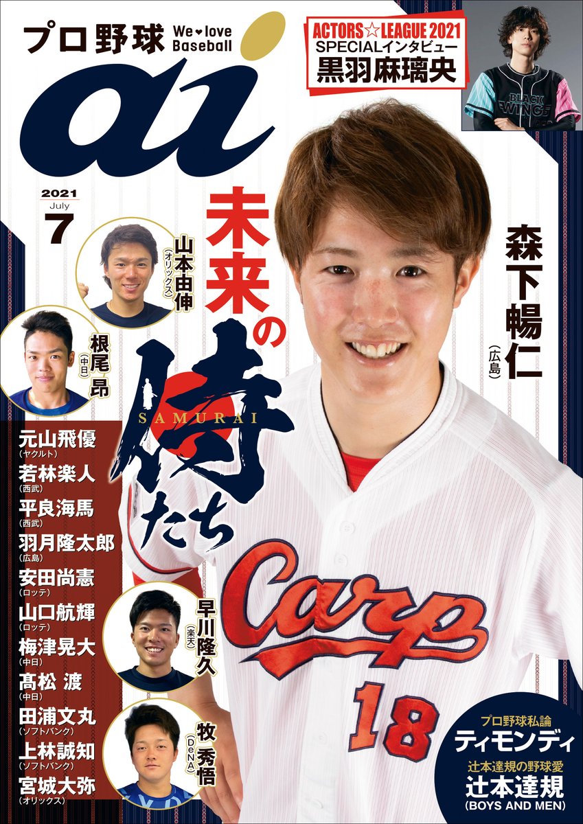 お待たせしました!6月1日発売♪プロ野球ai7月号の表紙が完成です!!カープの #森下暢仁 選手をはじめとした野球界の未来を担う若手ホープたちが大集合☆今話題の #ACTORSLEAGUE について #黒羽麻璃央 さんのインタビューも掲載!amazonでのご予約はこちらからどうぞ!↓ amazon.co.jp/dp/B08YNRZLGV