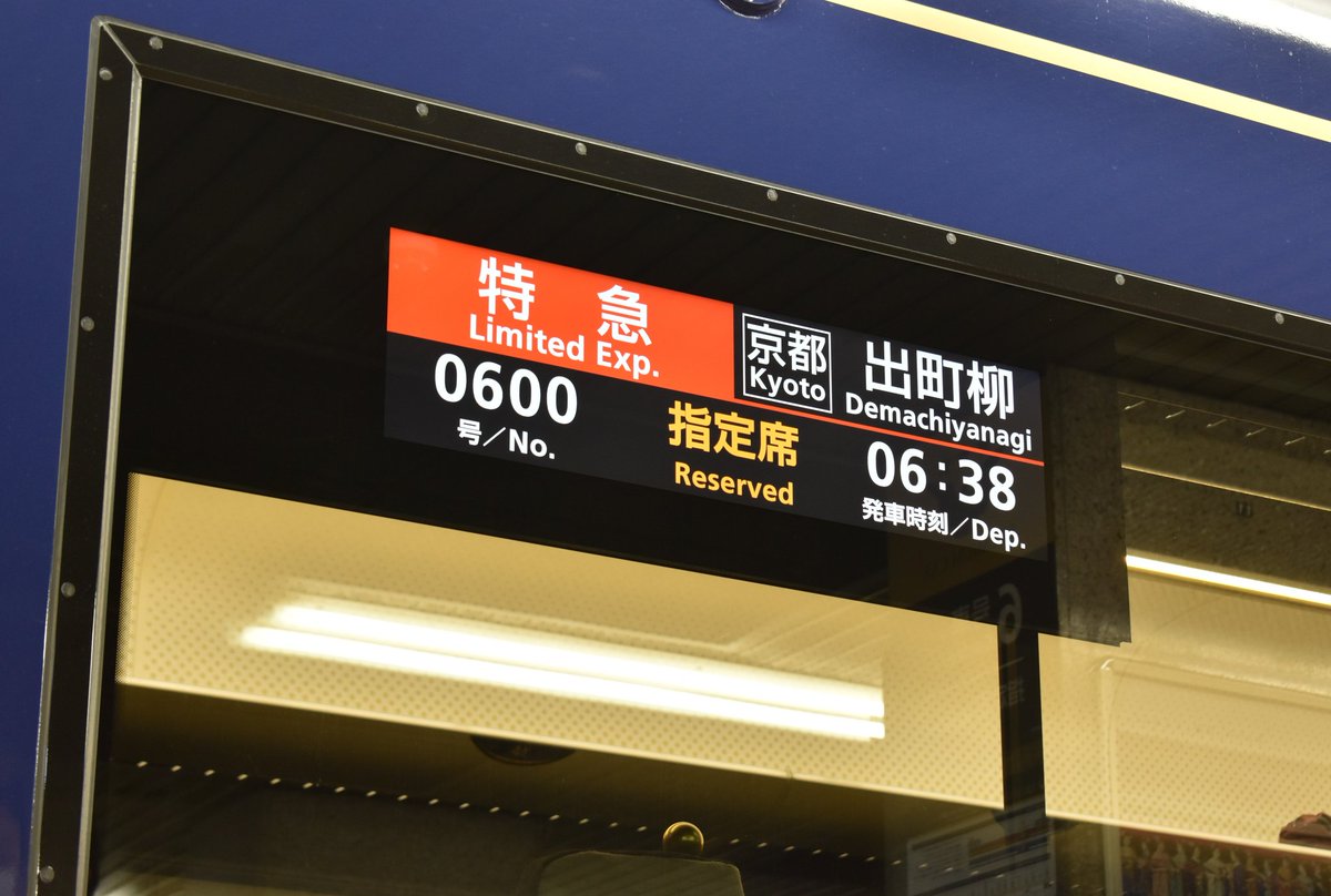 京阪3000系のプレミアムカーは、扉を閉めて数秒後、行き先表示に独特のアニメーションが流れる仕様になっていました。