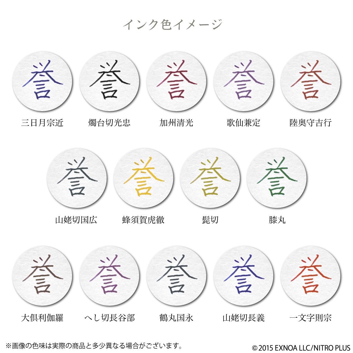 各刀剣男士をイメージしたデザインとインク色をお楽しみください。