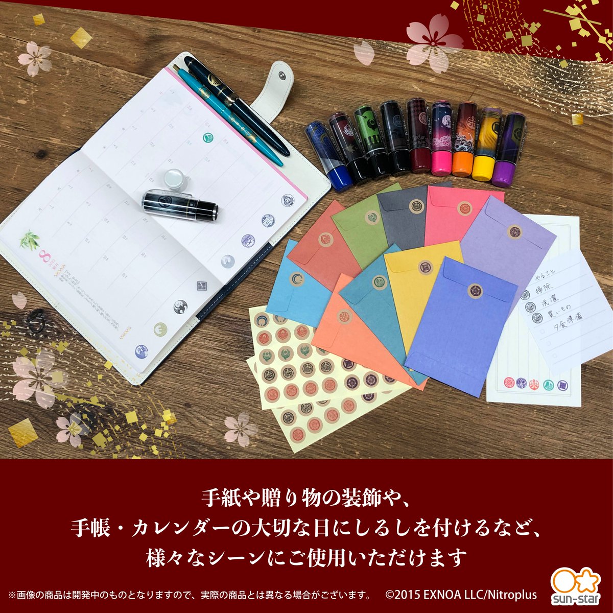 刀剣男士紋が押せるスタンプセットとなっており、高級感ある装飾が楽しめます!