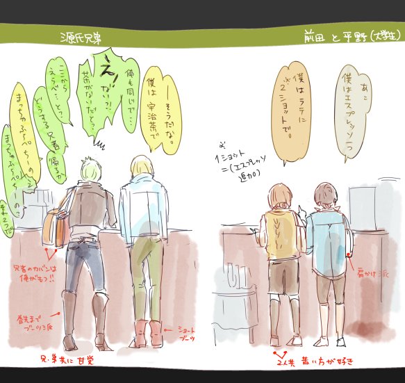 一番最初に描いた源氏兄弟ネタと比較的普通の絵とそれ以降のネタの雑コラ、、