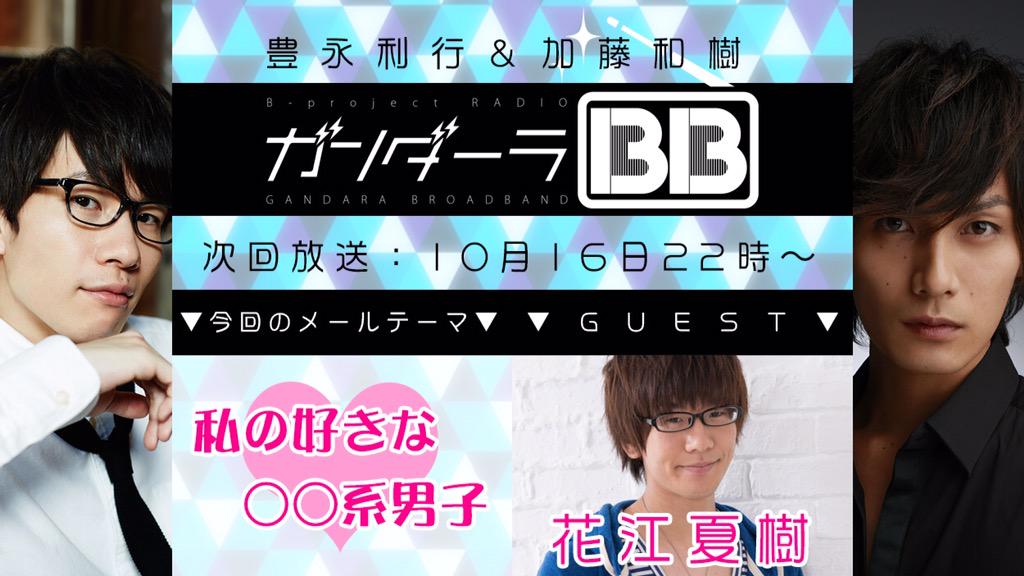 【ゲスト:花江夏樹】★Bプロニコ生ラジオ『ガンダーラBB』#02★10/16(金)22時~放送!メールテーマは「あなたの好きな○○系男子♥」たくさんのメールお待ちしてます!メール⇒ch.nicovideo.jp/loveart/blomaga 番組⇒live.nicovideo.jp/watch/lv235477…