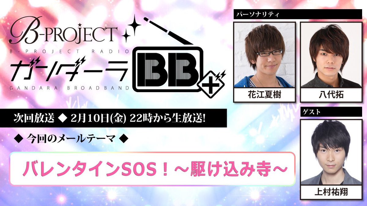 【RADIO】上村さんをゲストにお迎えしたBプロラジオ『ガンダーラBB+ #16』本日もたくさんのご視聴ありがとうございました!キラキンの新曲『Break it down』さらにカラ鉄コラボ第2弾の情報も解禁されました!3月のイベントも色々準備してますのでお楽しみに♪ #Bプロ