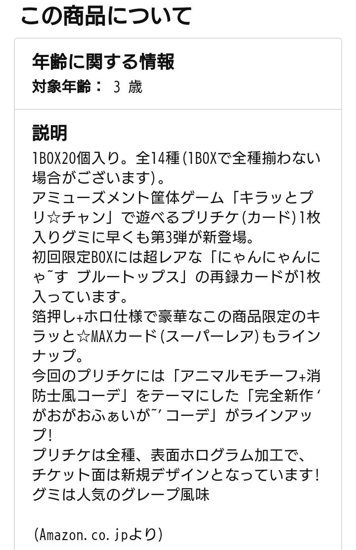 《初回限定BOX キラッとプリ☆チャン プリチケコレクショングミVol.3》