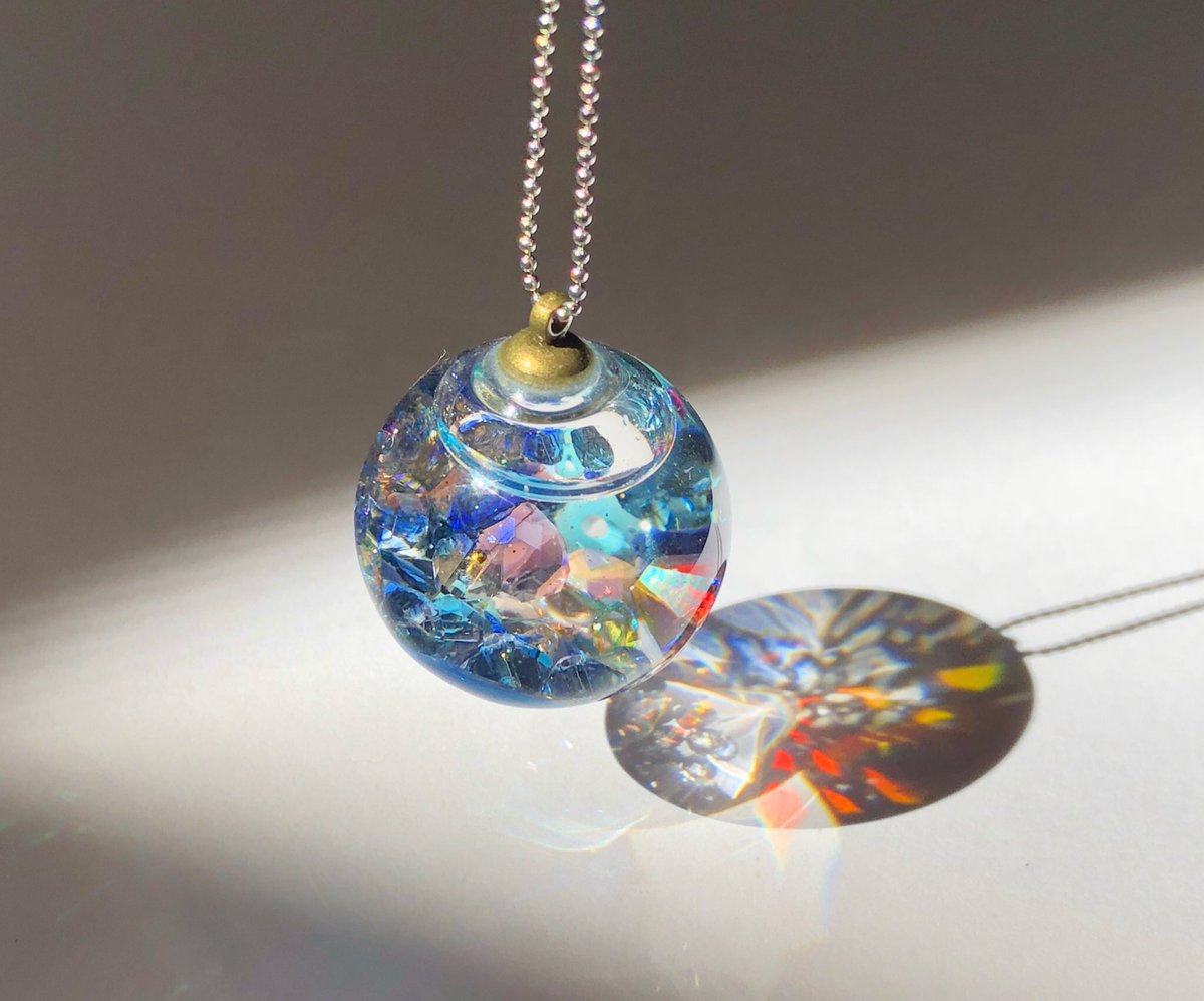 ガラスドームで制作したネックレスを出展いたします。中がゆらゆら揺れて万華鏡のようにキラキラします。#デザフェス宣伝2022秋