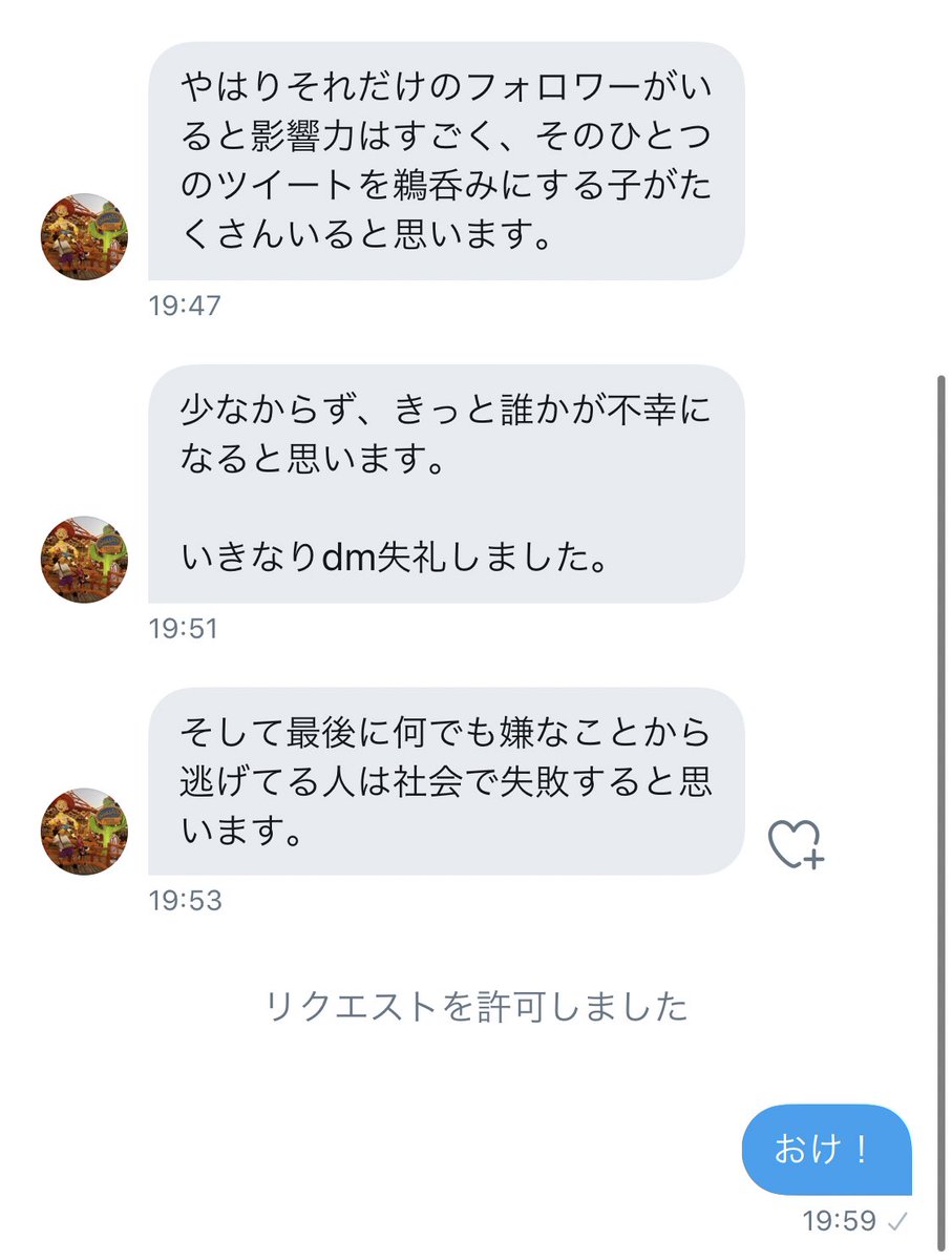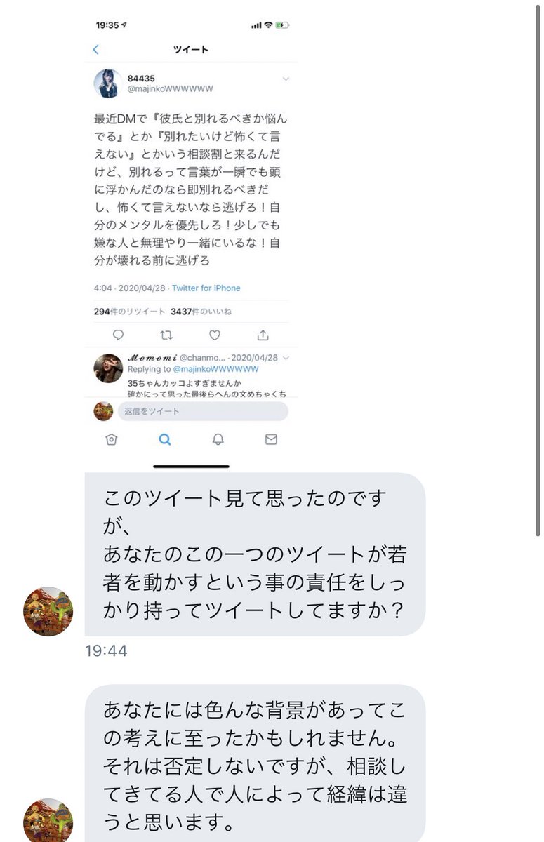 最近DMで『彼氏と別れるべきか悩んでる』とか『別れたいけど怖くて言えない』とかいう相談割と来るんだけど、別れるって言葉が一瞬でも頭に浮かんだのなら即別れるべきだし、怖くて言えないなら逃げろ!自分のメンタルを優先しろ!少しでも嫌な人と無理やり一緒にいるな!自分が壊れる前に逃げろ