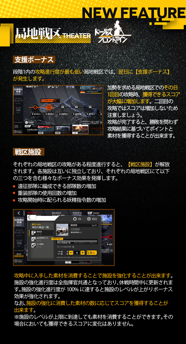 本日は「支援ボーナス」、「戦区施設」、「浸透偵察」について。