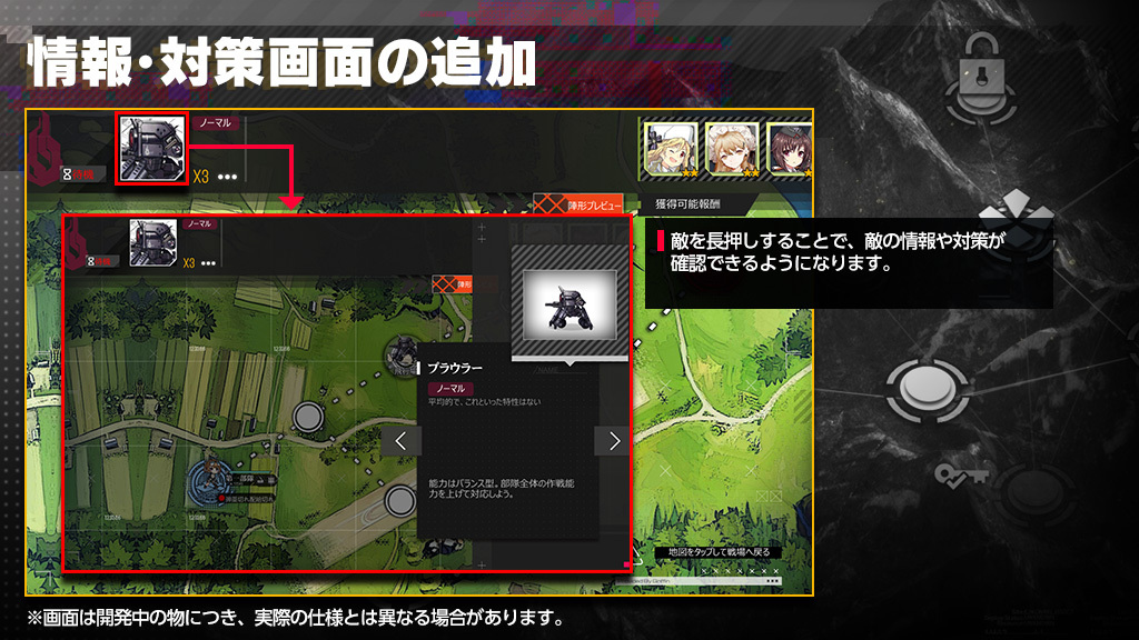 また、【作戦設定】画面に役立つ情報や推奨レベルなどが追加され、ステージの攻略がよりスムーズに行えるようになります。