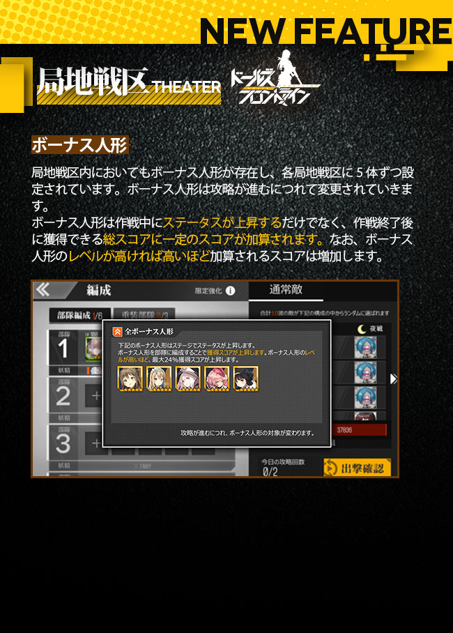 「ボーナス人形」は攻略段階によって変わるので、色んな人形を育てておいた方が良さそうですね!