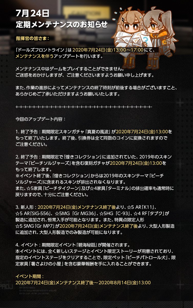 「7月31日(金)メンテナンス終了後」より、第十一戦役の通常・緊急マップ及びストーリーを追加!