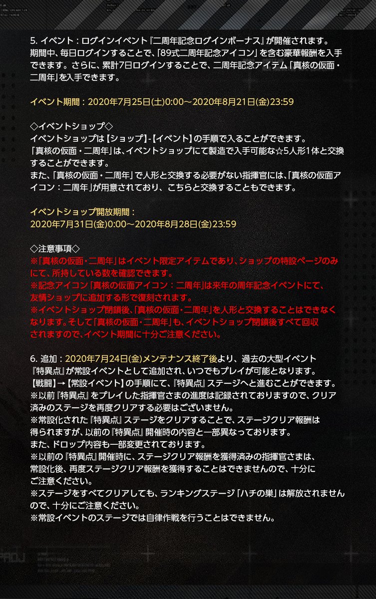 「7月25日(土) 0:00」より、『2周年記念ログインボーナス』を開催します!