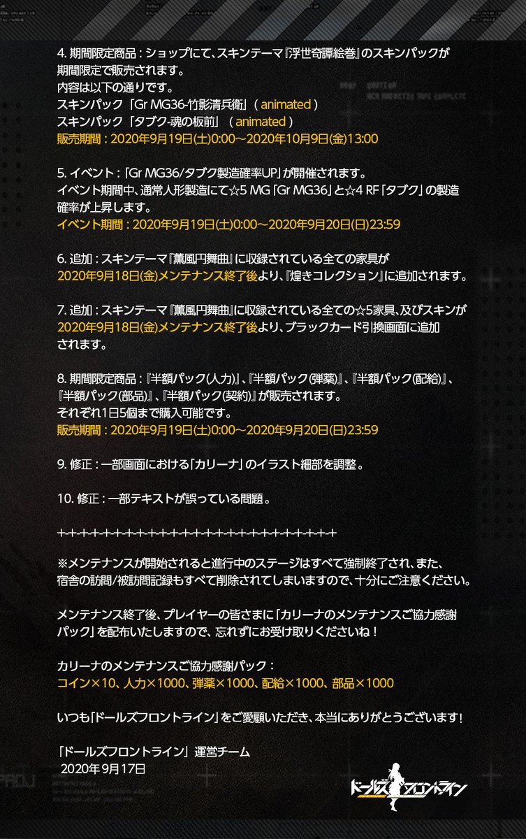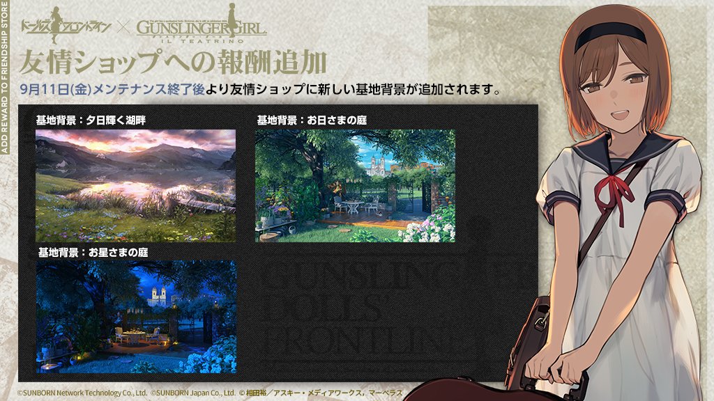 「9月11日(金) メンテナンス終了後」より友情ショップに新たな報酬を追加いたしました。