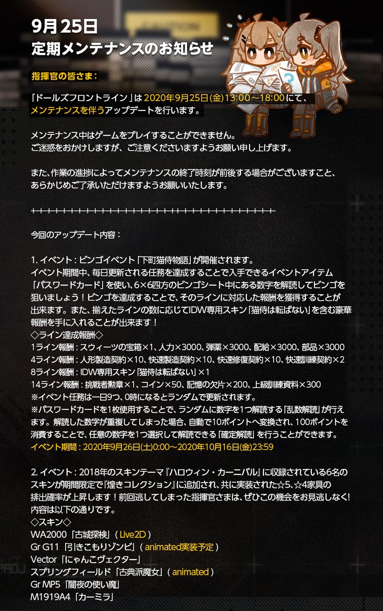 ガンスリンガー・ガールとのコラボイベント「夢中劇」は「10月9日(金) 13:00」まで開催しております。