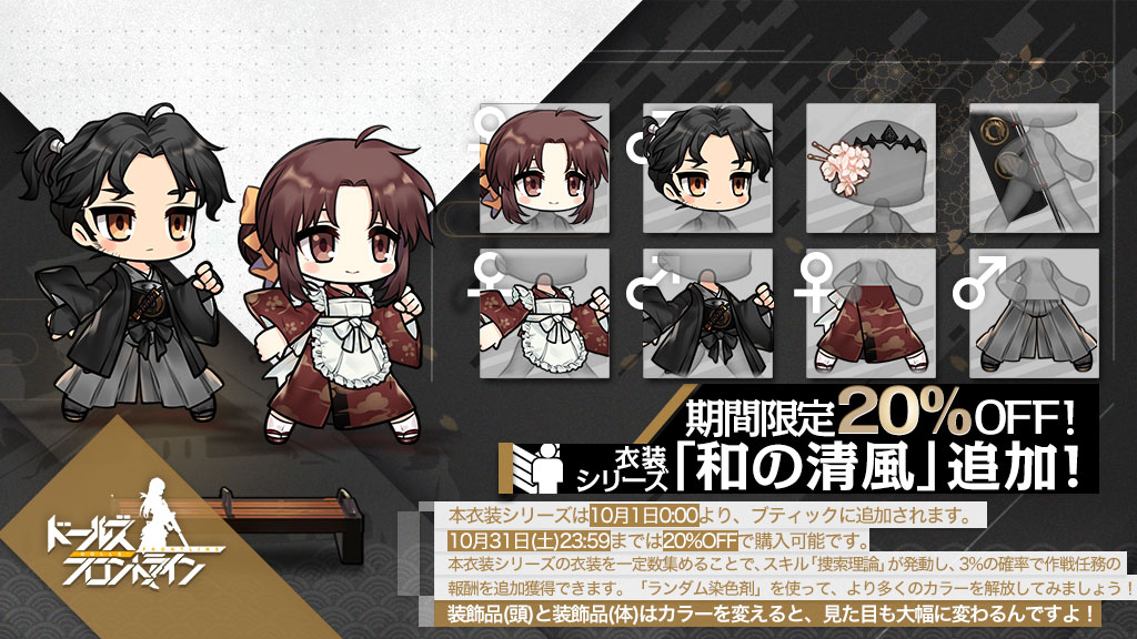 「10月1日(木) 0時」より、指揮官クローゼットに時代劇のような雰囲気が楽しめる着物や袴の新衣装「和の清風」が登場!