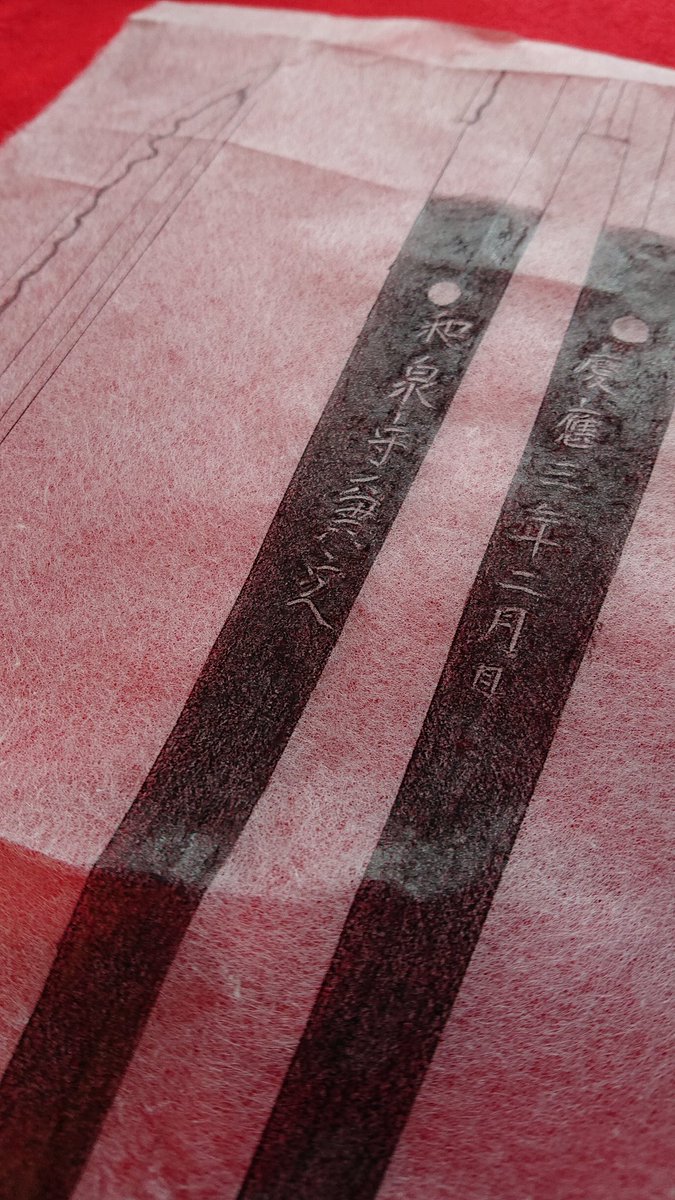 本日、土方歳三愛刀・和泉守兼定、研師・苅田直治先生に押し型をとっていただいています。