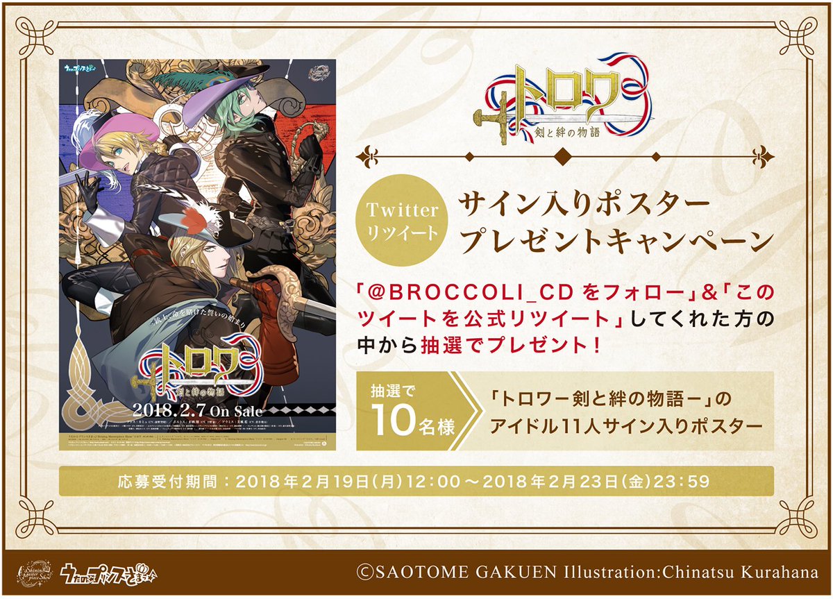 うたの☆プリンスさまっ♪Shining Masterpiece Show「トロワ-剣と絆の物語-」Twitterリツイートキャンペーンを開催! 当アカウントをフォロー&リツイートして「トロワ-剣と絆の物語-」アイドル11人サイン入りポスターを当てよう 応募受付は2018年2月23日(金)23:59までutapri.com/sp/sms/trois/?…