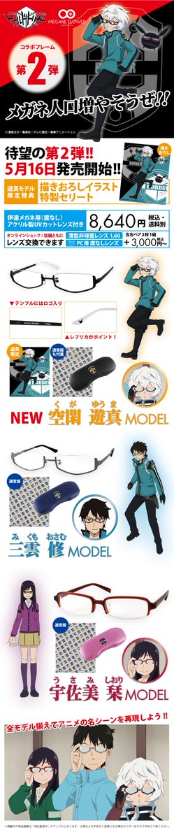 5/16(月)よりワールドトリガーコラボフレーム第2弾「空閑 遊真(くが ゆうま)モデル」を発売開始します! 遊真モデル限定【描きおろしイラストセリート】付! メガネ人口増やそうぜ!! item.rakuten.co.jp/upup/c/0000000…