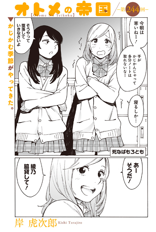 オトメの帝国更新しました。この243話を読む人生と読まない人生があります。浅水が今まで一番表情豊かで、描いていて幸せでした。かなりの高確率で泣いていただけると申し上げておきます。