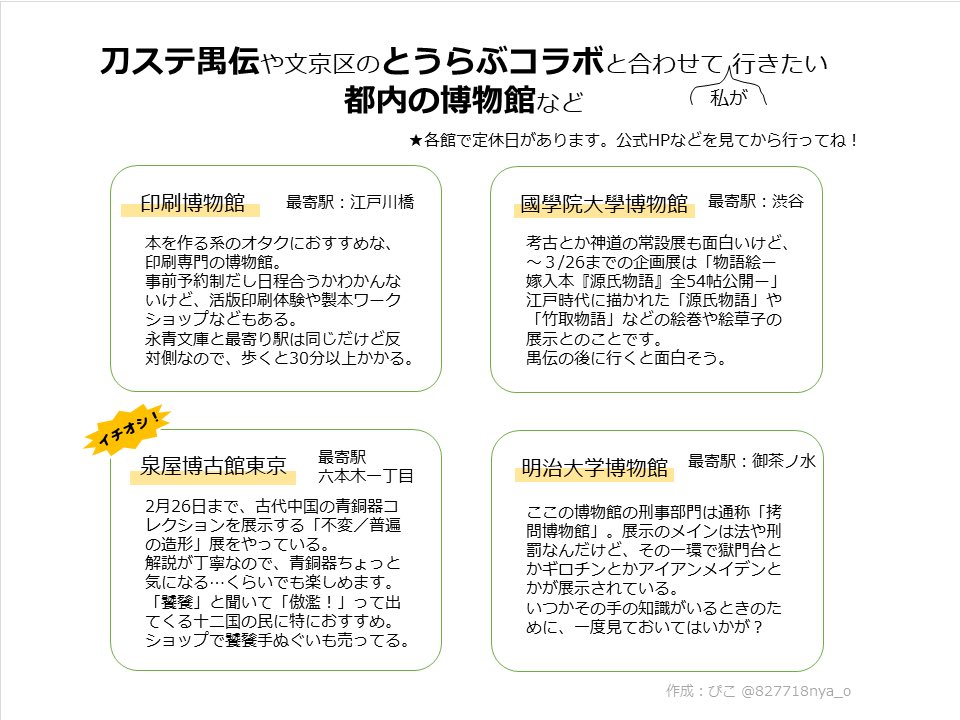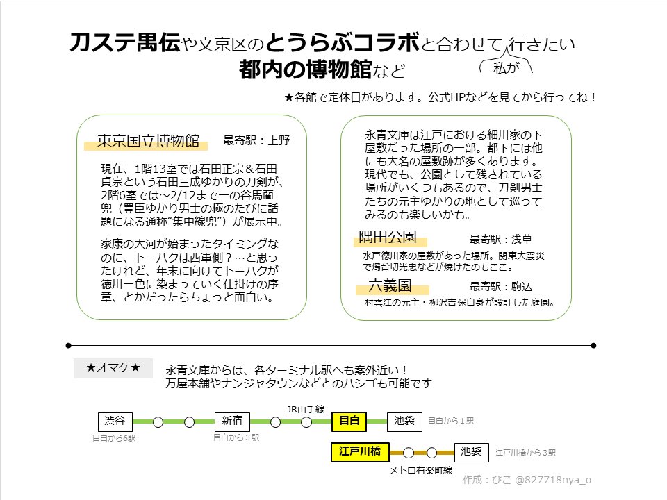 「刀剣展示へ行く時、どのくらいまで徒歩OK?」について、せっかくなのでまとめプレゼン作りました!以下ツリーに繋げます