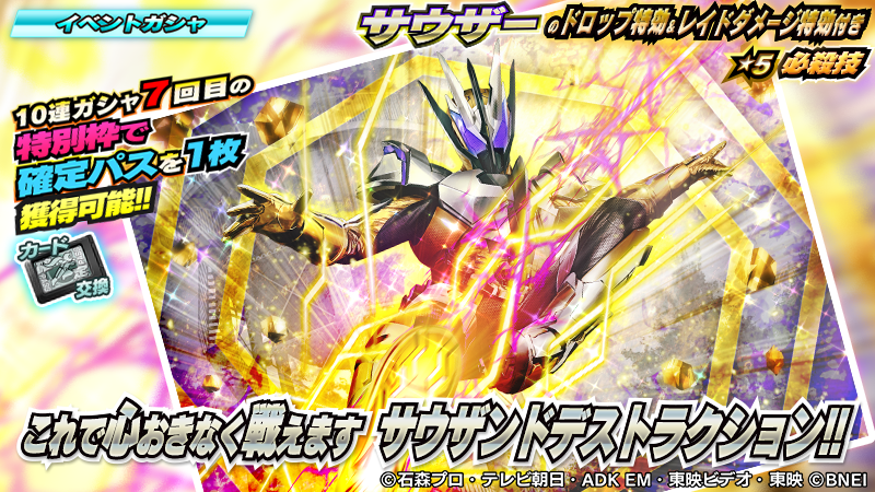 10連ガシャ7回目の特別枠で、確定パスがもらえます!
