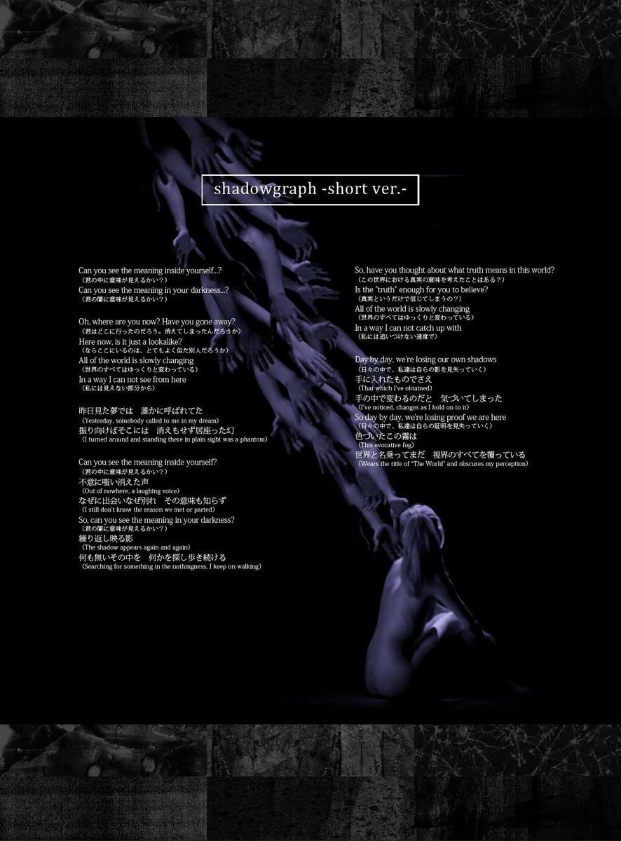 先日公開されました「shadowgraph」MVのショートverが大変ご好評いただいておりますので、さらにロングバージョンを公開いたします。