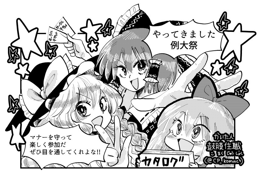 2018年10月14日(日)開催の第5回秋季例大祭のカタログの注意書き漫画を描かせていただきました。 拙いながらイベントの注意事項がわかりやすい漫画にしようと頑張りましたので、お手に取った際に読んでいただけたら嬉しいです。