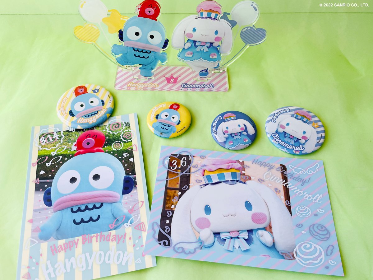 3月のシナモロールとハンギョドンのお誕生日を記念して「缶バッジセット」、「アクリルスタンドセット」が登場!