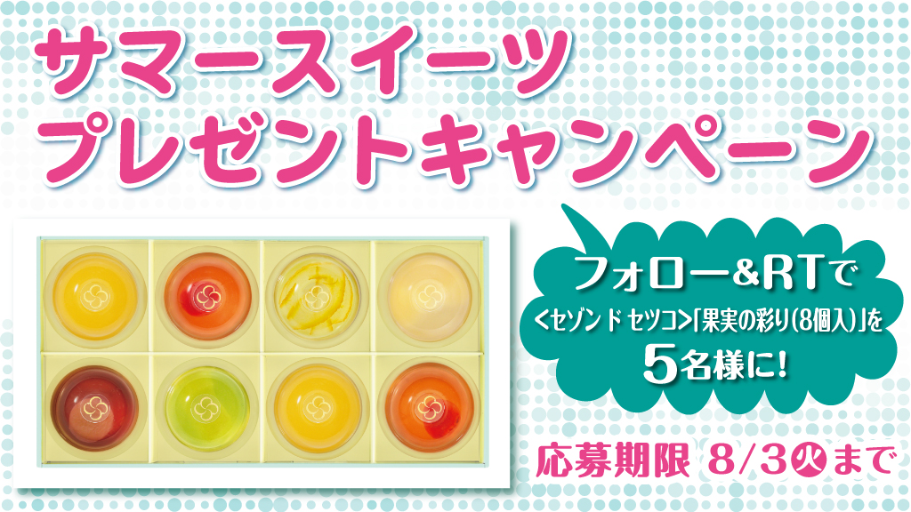 <セゾン ド セツコ>の、のどごしのなめらかな国産果実の天然水ジュレ「果実の彩り(8個入)」を抽選で5名様にプレゼント🎁