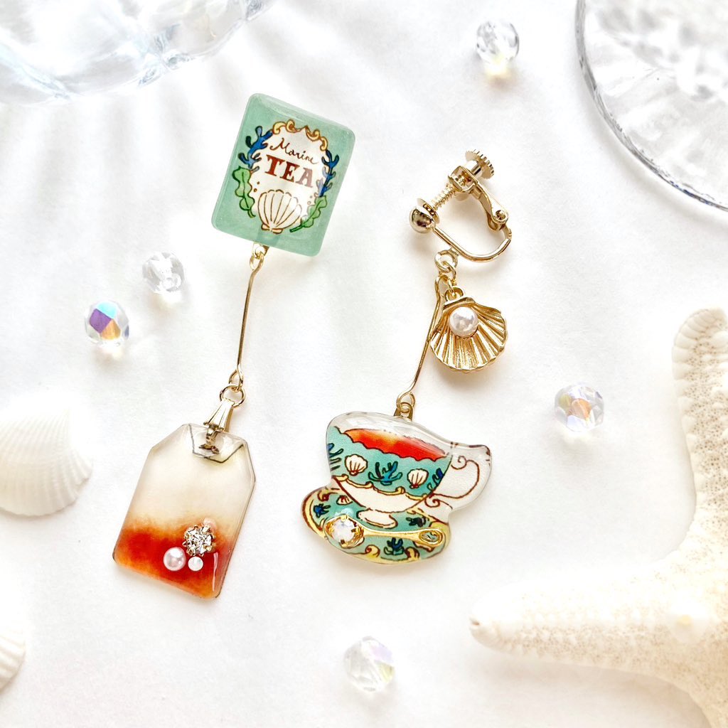 夏のマリンティーイヤリング🫖🫧🧜♀️