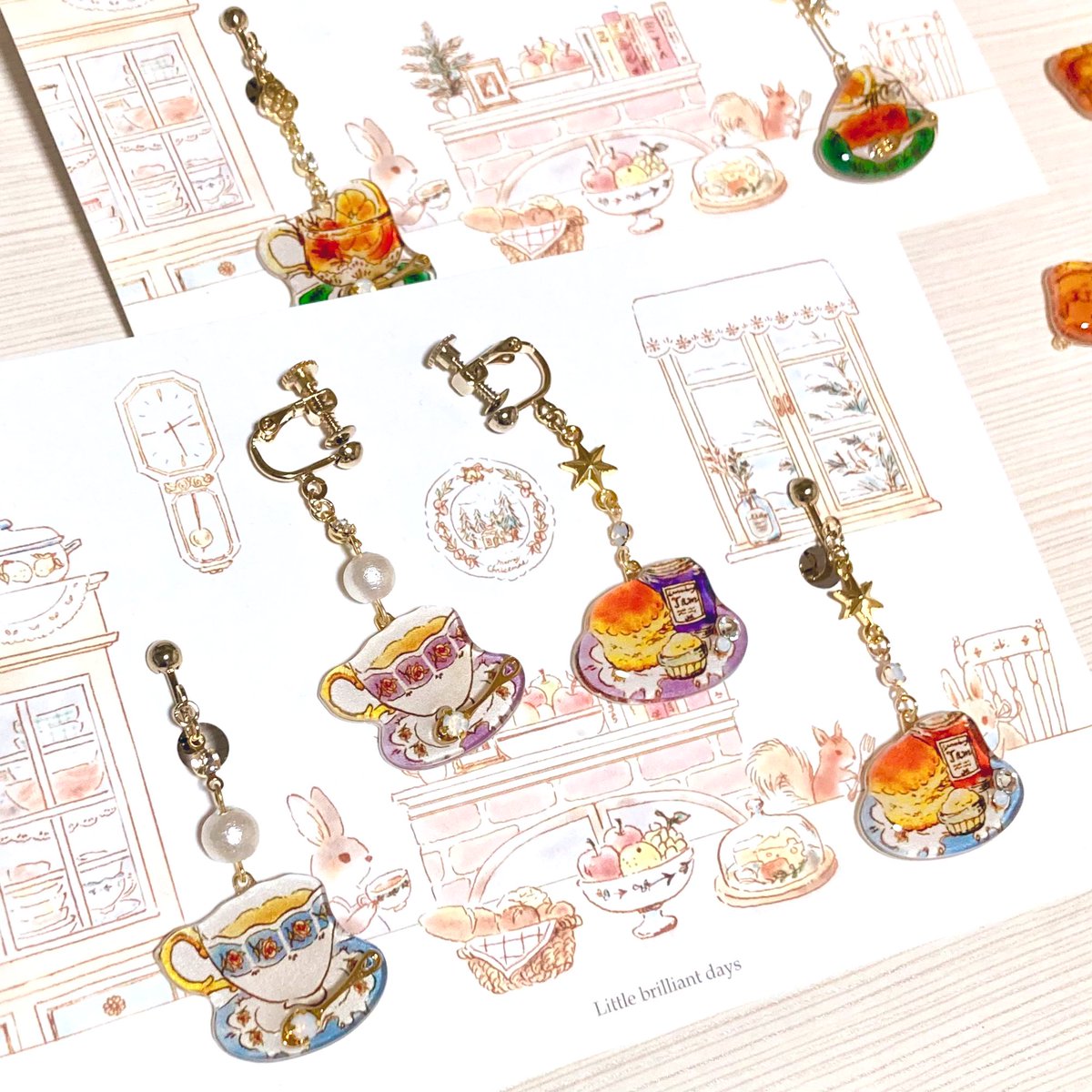 どこかの日々の暮らしを紡いだイラスト雑貨のお店です。ぷるぷるリアルなフルーツピアス🍑紅茶アクセサリー🫖森の動物たち🐇|shop⏩minne