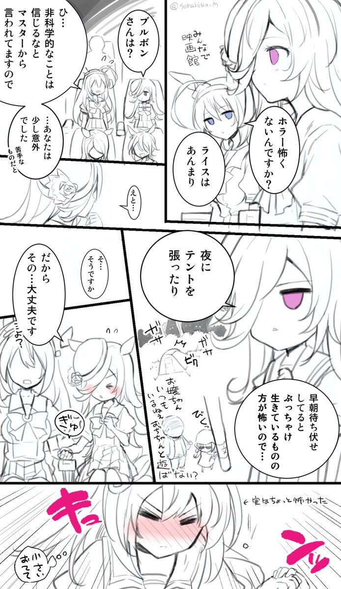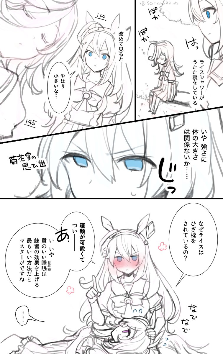 ミホノブルボンがライスシャワーをひざ枕する漫画