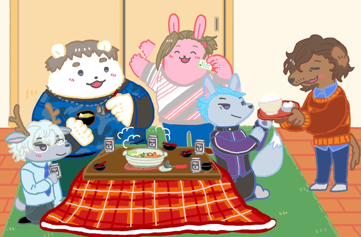 鍋パ🍲するあにまるみのりーズ🦌🐻❄️🐰🦊🐶