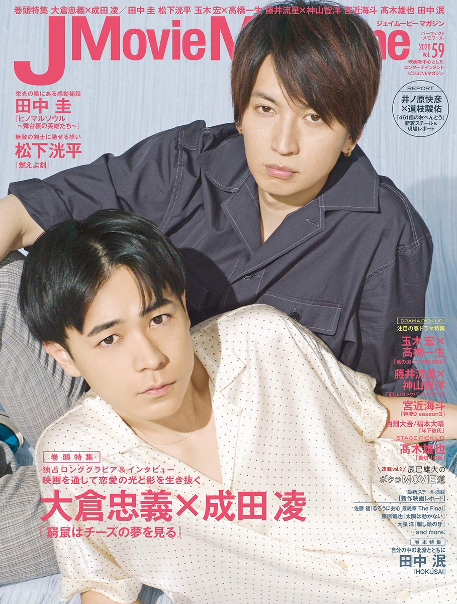5月1日発売「J Movie Magazine」の表紙&巻頭特集は『窮鼠はチーズの夢を見る』大倉忠義さん×成田凌さん。ラインナップはこちら!