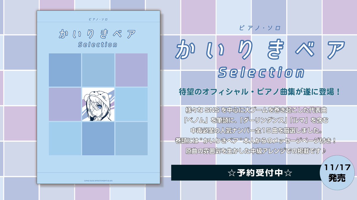 超人気ボカロP”かいりきベア”初のオフィシャル・ピアノ曲集が登場!