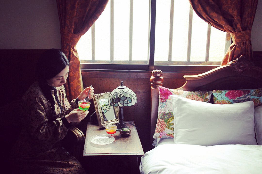 月屋の洋室「三日月」でも髪結い撮影会を致しました。資生堂@SHISEIDO_corp のロングセラー化粧液 #オイデルミン