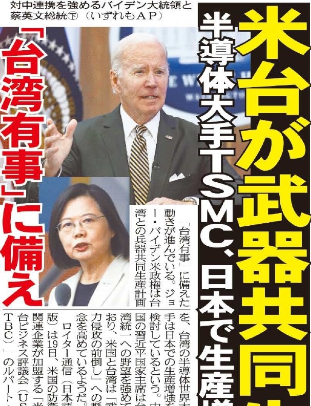 バイデン米政権は台湾との兵器共同生産計画を、台湾の半導体世界大手は日本での生産増強を検討しています