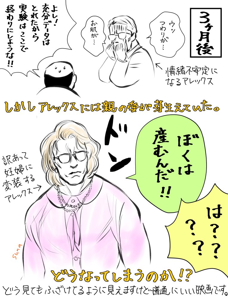 シュワちゃんの貴重な出産シーン。ジュニアの感想を描きました。 #映画感想
