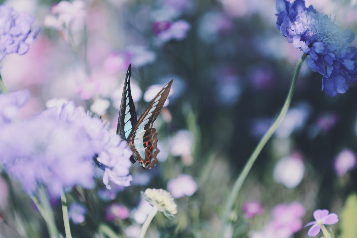 スカビオサとアオスジアゲハ