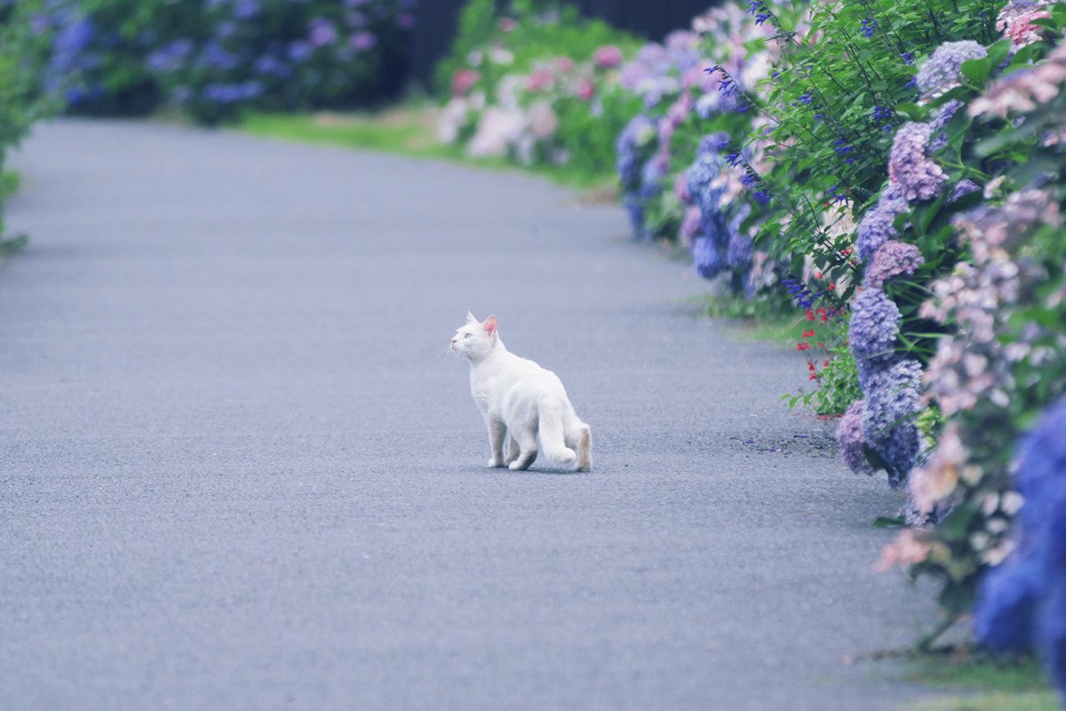 紫陽花と猫
