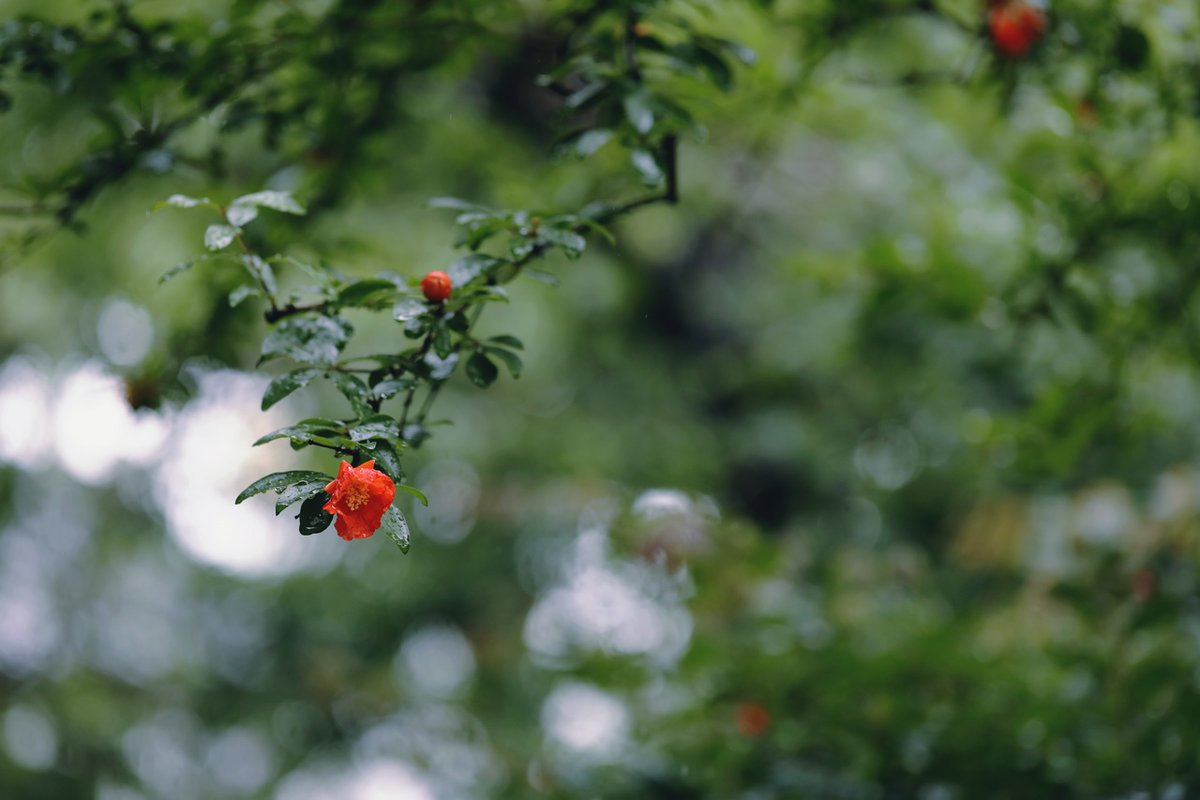 五月雨にぬれてやあかき花石榴