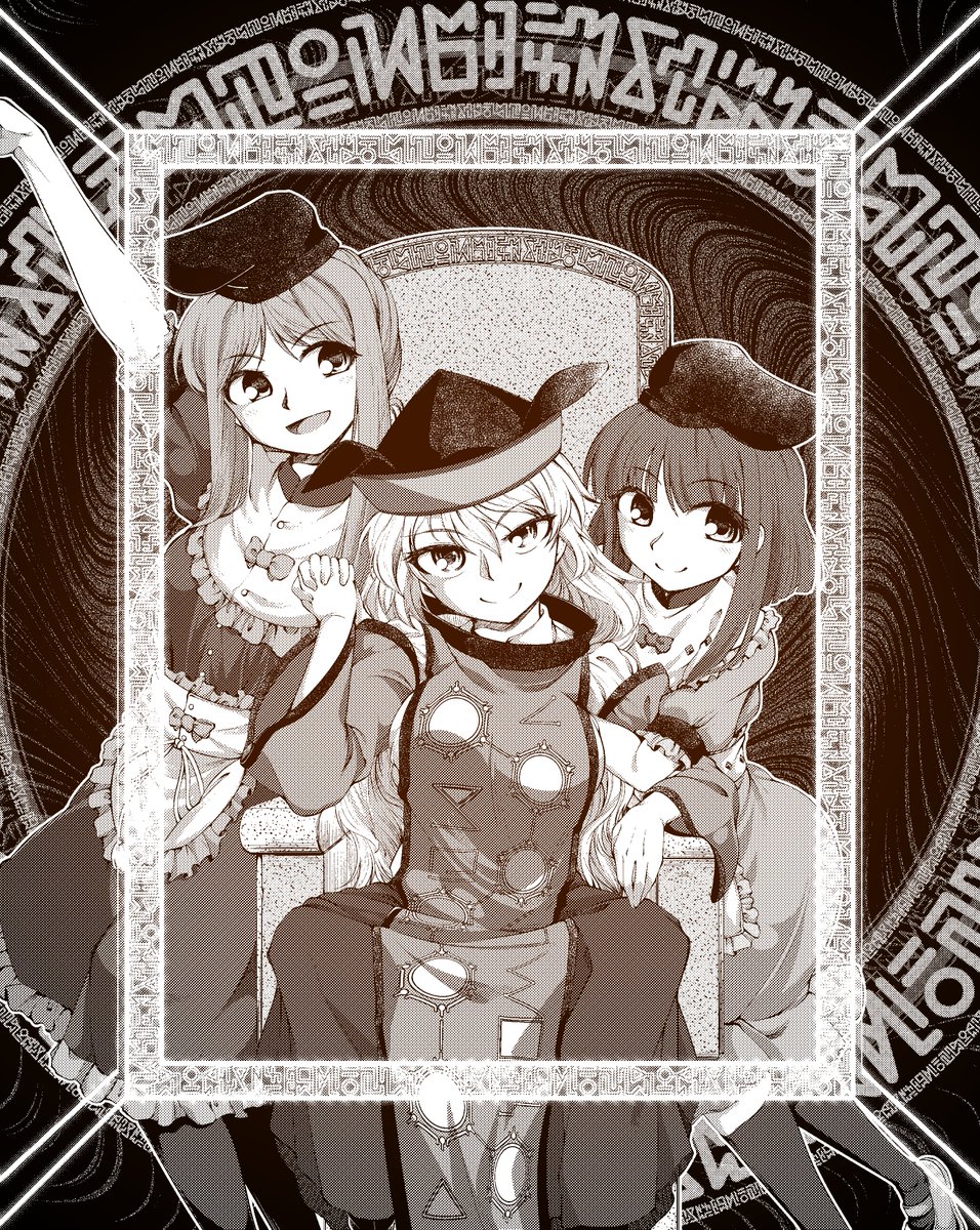 秘神、摩多羅隠岐奈と二童子の舞と里乃が描けました。