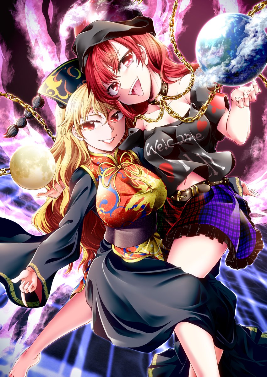 ヘカーティアと純狐の最凶コンビが描けました。スカート大変でしたわ