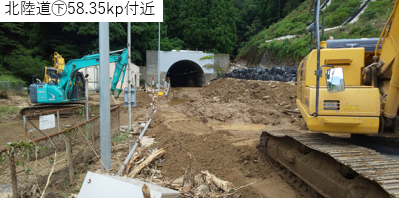 #北陸道 土砂流入による復旧作業の様子です。